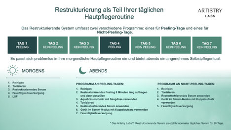 Das System ist für 28 Tage ausgelegt (eine komplette Zellerneuerungs-Phase). Die ersten Ergebnisse kannst du schon nach der ersten Anwendung feststellen. Nach vier Wochen ist deine Haut sichtbar ebenmäßiger, feinporiger und strahlender geworden.